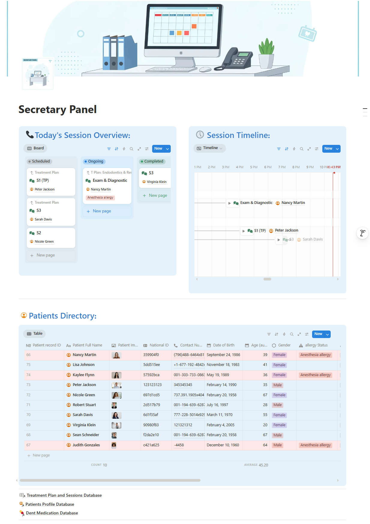 Denta Clinica Pro is a complete digital workspace for dentists, built entirely in Notion.