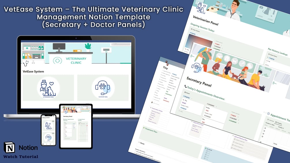 VetEase System – The Ultimate Veterinary Clinic Management Notion Template (Secretary + Doctor Panels)
